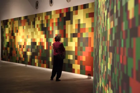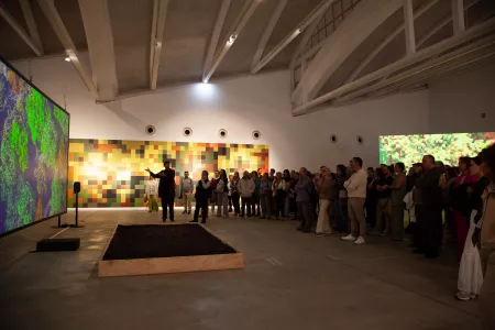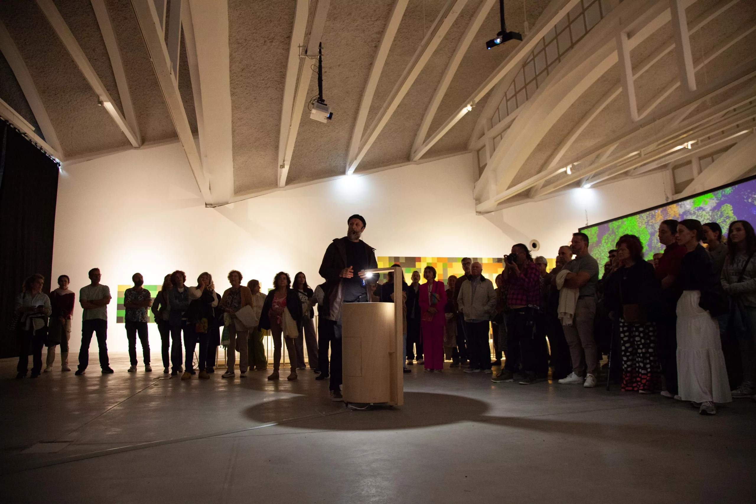 El Bosque de Hugo Martínez-Tormo traslada el imaginario estético del ecosistema natural al espacio expositivo a través de tres instalaciones. Las obras establecen una relación de corresponsabilidad solidaria y co-creación simbólica como en el Bosque Pixelado una gran imagen fragmentada en la que cada cuadro-píxel adquirido por el público se traduce en la plantación de un árbol real. La obra no se agota en la representación, sino que genera una acción ecológica en el mundo físico.