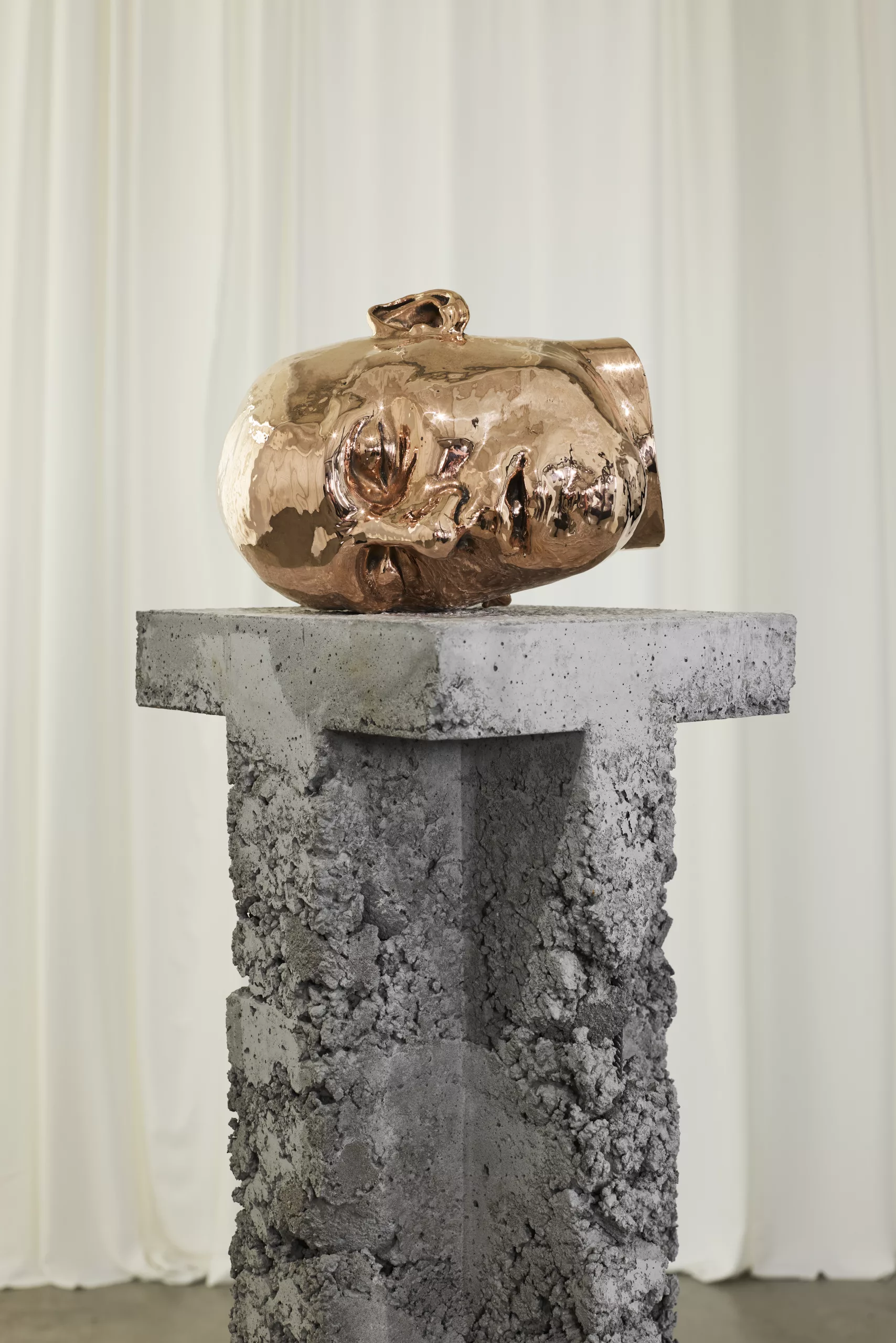 Esculturas de cabezas humanas realizadas con maíz y cobre de origen biológico, basadas en escaneos 3D. Fotografías de microscopio electrónico de barrido de pastillas psicotrópicas sobre lámina de acero: Trankimazin 2 mg, Brintellix 10 mg, Lorazepan 1 mg, Maserati XTC.